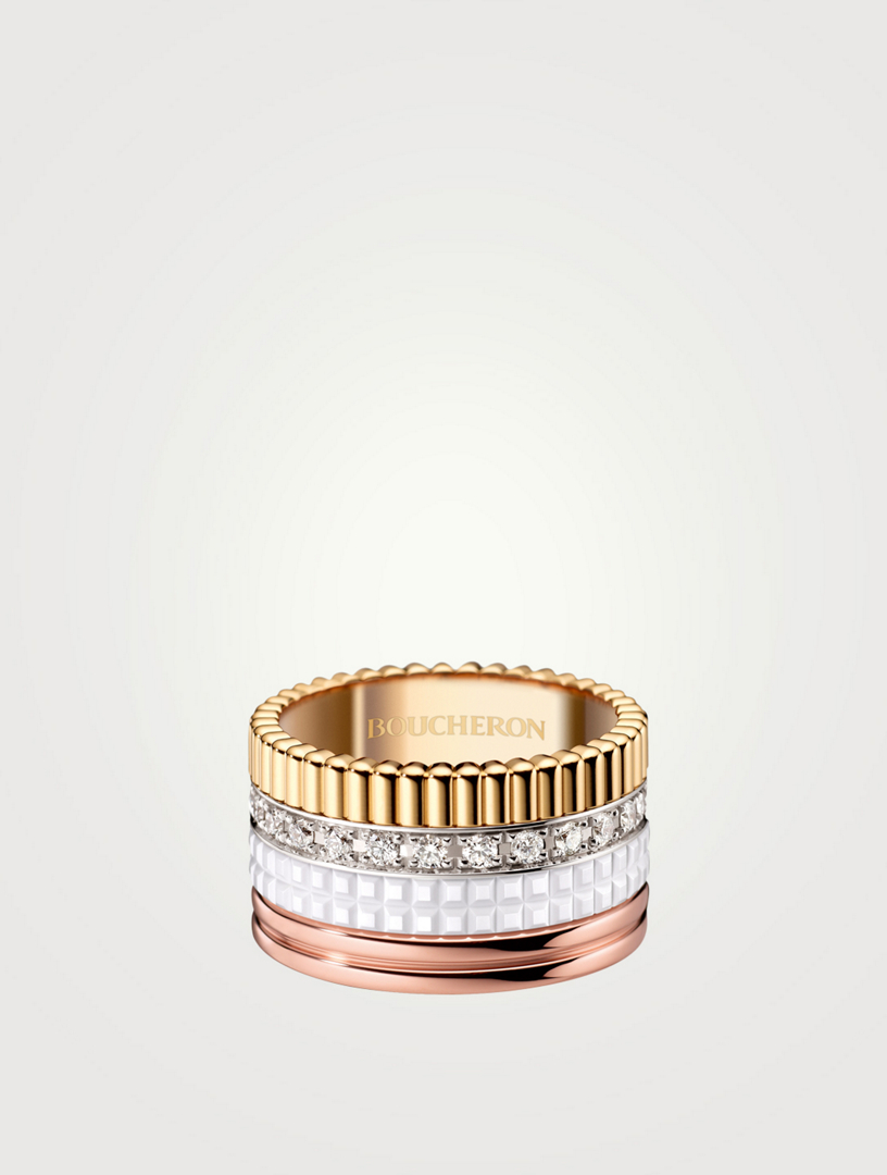 Bague Boucheron Quatre White Edition Large En Or Jaune Or Blanc Or Rose Et Ceramique