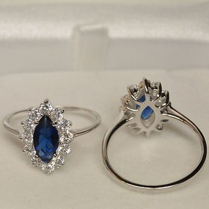 Bijoux Kate Middleton Bague Argent 925 1000 Saphir Bleu