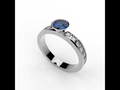 Bagues De Fiancailles Ariel Bagues Argent Saphir Bleu Rond Diamant Blanc
