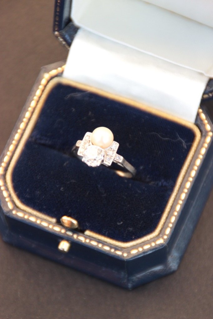 Bague Perle Fine Diamants Art Deco